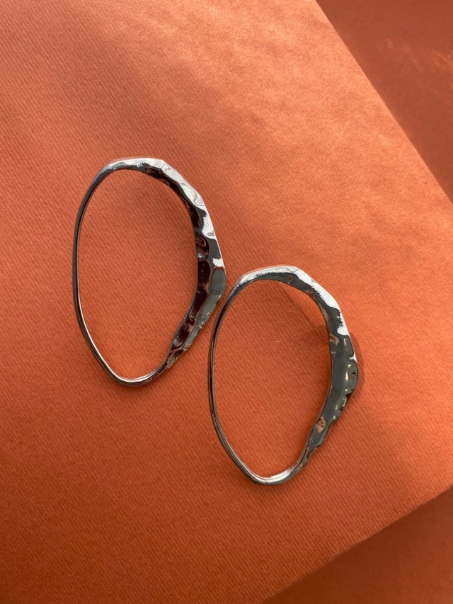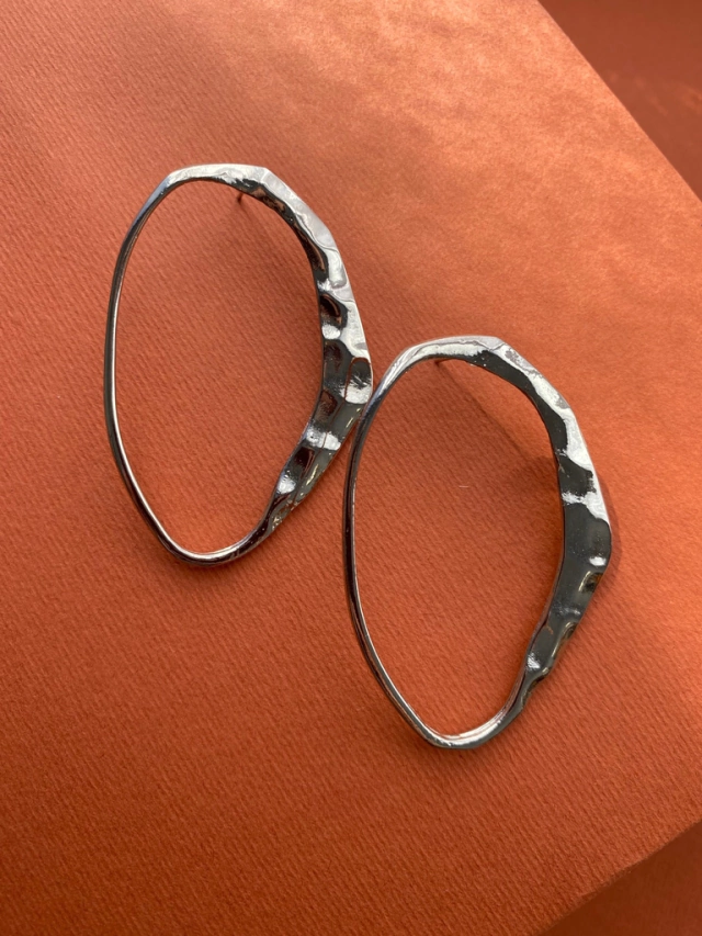 Aros ovalados de forma irregular color niquel brillante.