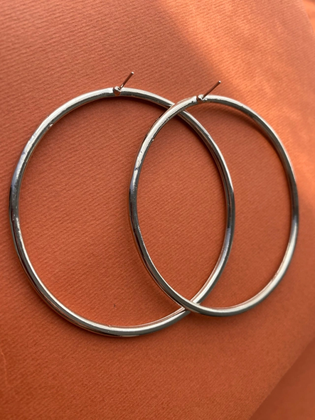 Argollas simple tamaño XL bañadas en niquel brillante.