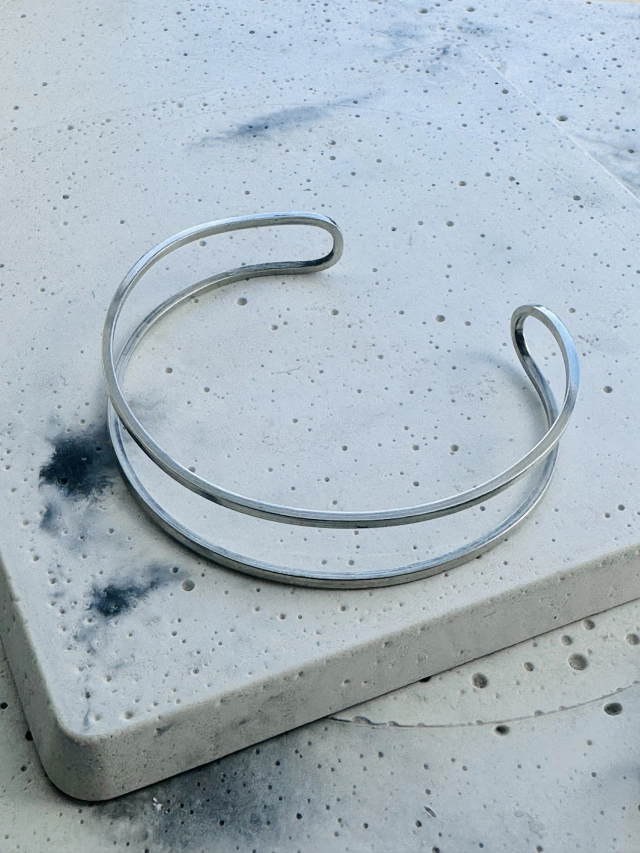 Brazalete de hilo redondo de alpaca con doble vuelta.