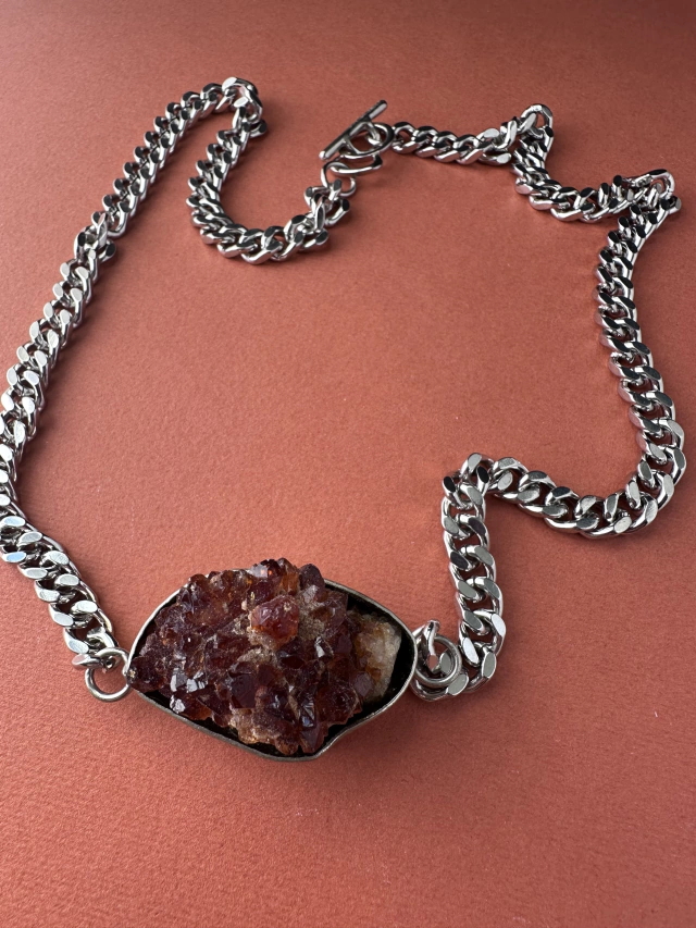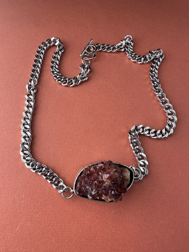 Collar con dije central de piedra engarzada en alpaca.