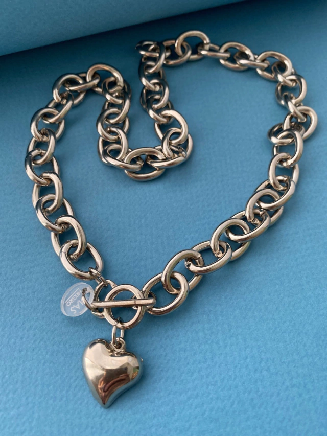 Collar con cierre marinero al frente y dije de corazón en el centro.