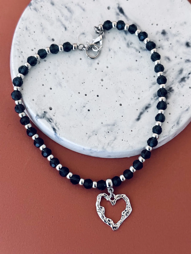 Collar corto de cuentas de cristal checo con dije central en forma de cirazón.