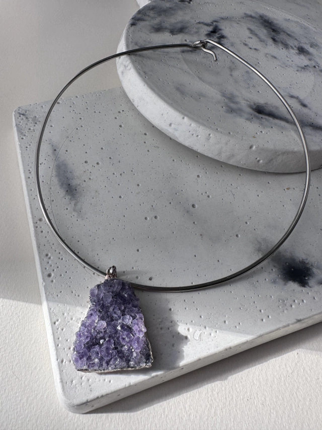 Hilo de alpaca en forma de gargantilla circular y dije amatista.