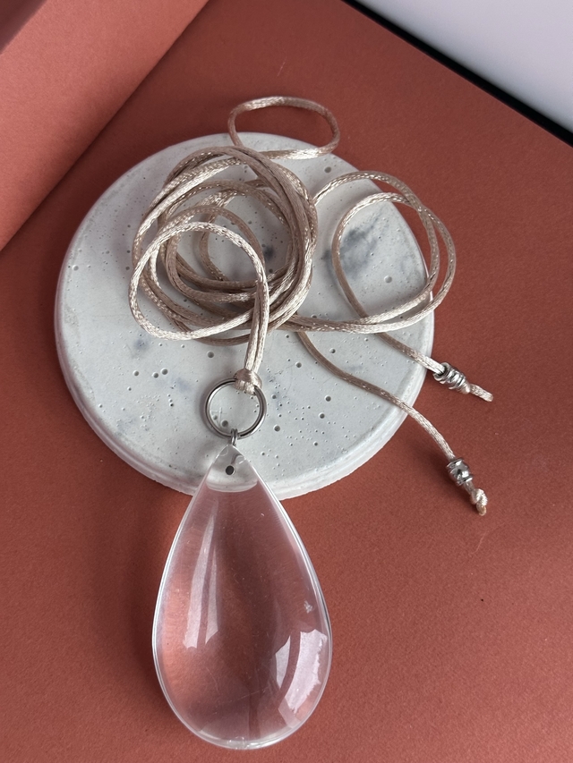 Hilo de seda color champagne con dije central en forma de gran gota.